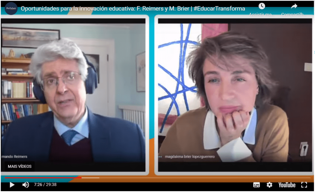 Foi neste contexto que, no início de março, assisti ao encontro virtual entre Fernando M. Reimers, professor da Universidade de Harvard e diretor da Global Educational Innovation Initiative (EUA) e Magdalena Brier, diretora do Programa de Educación Digital ProFuturo Fundación Telefonica (Espanha), discutindo o tema “Oportunidades para la innovación educativa en la era pós-pandémica”. Para mim, este debate serviu de estímulo neste momento de notícias negativas.
